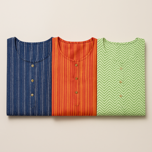 Cotton Blend Kurtas in Blue, Orange & Green
