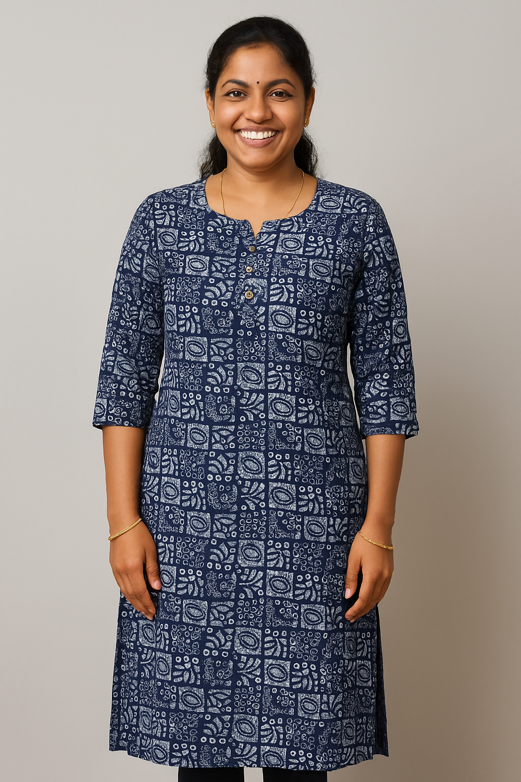 Bring timeless ethnic charm to your everyday look with the Absaara Indigo Charm Cotton Block-Print Kurta.