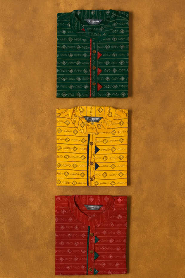 Add timeless ethnic charm to your everyday wardrobe with our Geo-Print Cotton Kurta – a blend of traditional design and modern comfort.
