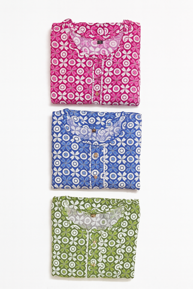 Care: Hand wash separately in cold water; do not bleach; line dry in shade; warm iron on cotton parts; avoid direct ironing on foil print (use a cloth).