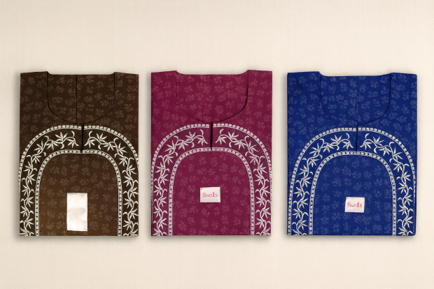 Elegant embroidered cotton nighty featuring soft breathable fabric, beautiful white vine-leaf embroidery on the neckline, and a relaxed fit for all-day comfort.