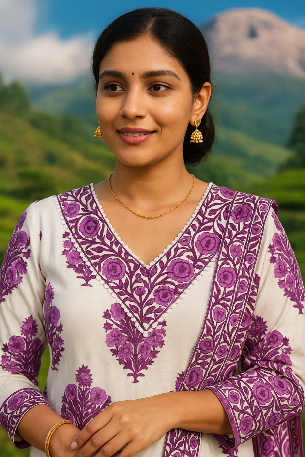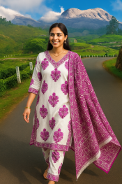 Title: KPD “Kashish Phool” Cotton Churidar Set (Kurta–Pant–Dupatta)