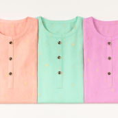 Soft pastel printed cotton kurti in elegant peach, mint, and orchid tones.
