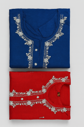 Kurta & Pant: Viscose–rayon slub; soft, breathable, graceful fall
