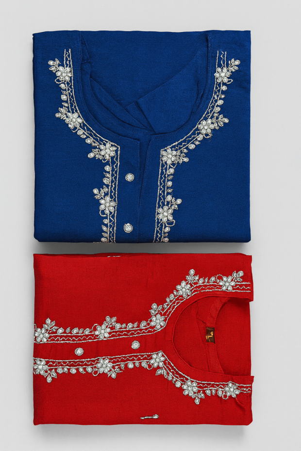 Noor Pearl Rayon Embroidered Kurta Set with Dupatta (Emerald / Ruby / Royal Blue)