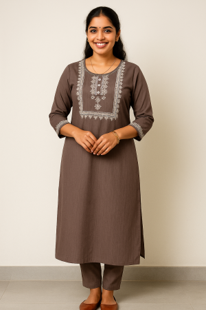 Aarvi Grace Women’s Embroidered Cotton Kurta – Soft & Elegant Daily Wear