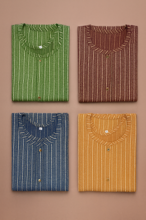Bring comfort and elegance together with the Aarvi Stripe Classic Cotton Kurta Collection from Absaara.