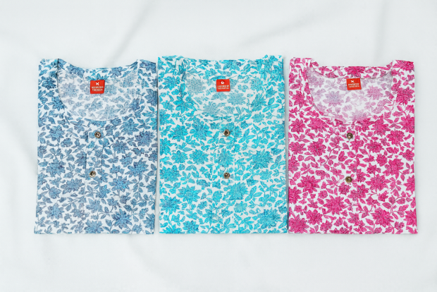 Crafted from a soft cotton blend, this kurta features delicate floral prints that add freshness and style to your daily look.