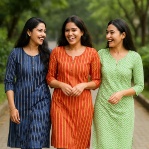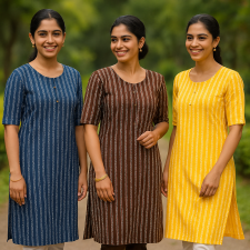 Cotton Blend Kurtas in Blue, Orange & Green