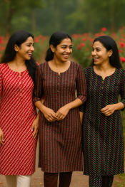 Stay effortlessly stylish with this 3-top cotton combo featuring beautiful red, maroon, and black printed kurtas. Made from soft, breathable cotton for all-day comfort.