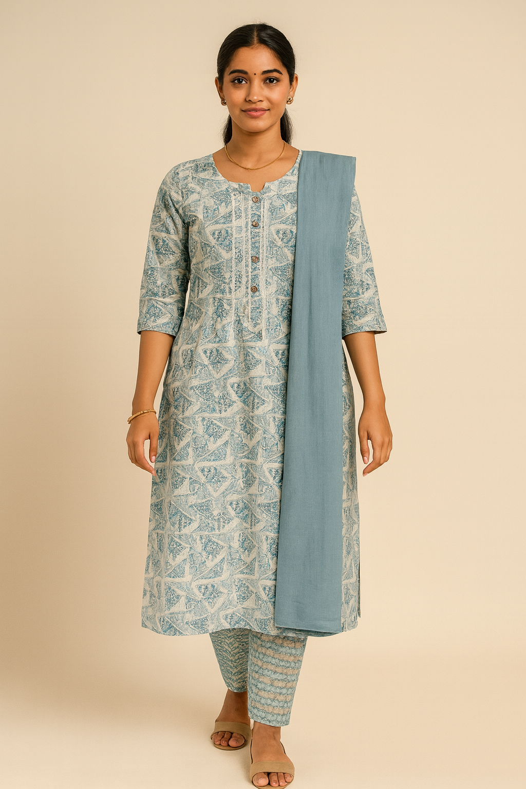 This churidar set is perfect for office wear, casual outings, festive gatherings, and daily comfort in warm weather.