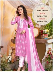 Refresh your wardrobe with the soft charm of this Minu Nayana Pink Handloom Cotton Churidar Set — a versatile outfit that blends elegance and comfort.