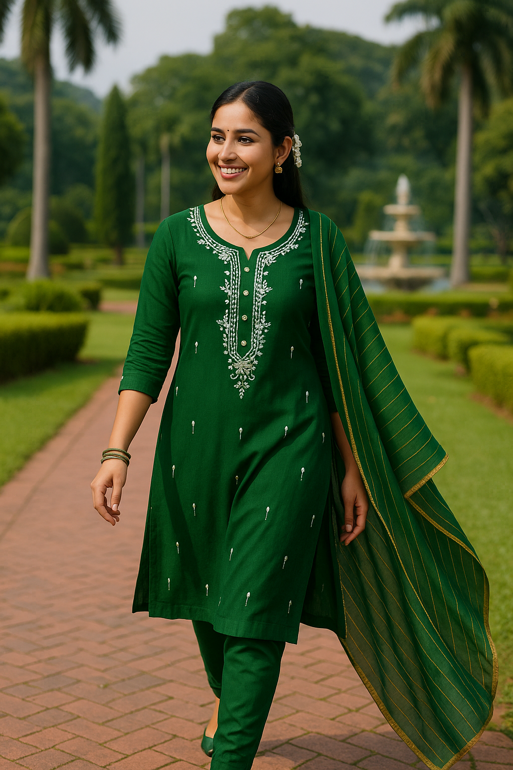 Kurta & Pant: Viscose–rayon slub; soft, breathable, graceful fall